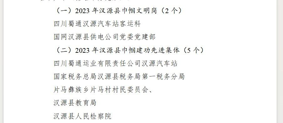 在“三八”国际妇女节来临之际,u支付集团蜀通汉源汽车站被汉源县妇联评为“2023年汉源县巾帼建工先进集体”、“2023年汉源县巾帼文明岗”。