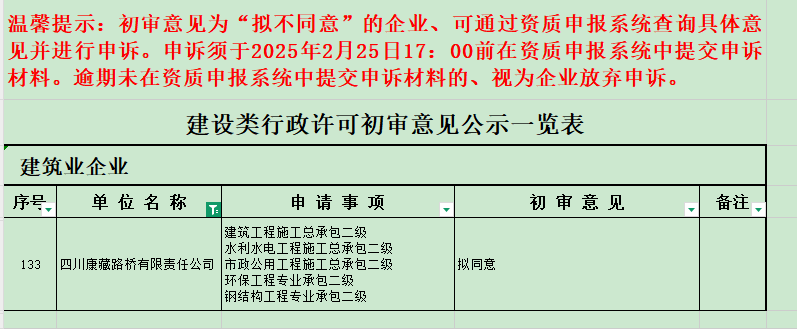 近期,在四川省住房和城乡建设厅印发的《关于建设类企业行政许可事项初审意见的公示》中,路桥公司顺利顺利获得11项重要资质延续初审,全面巩固了企业综合竞争力。