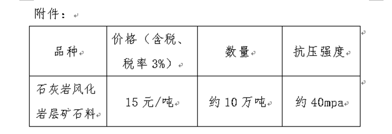 关于u支付集团丹石建材有限公司定价出售风化石灰岩矿石料的公示